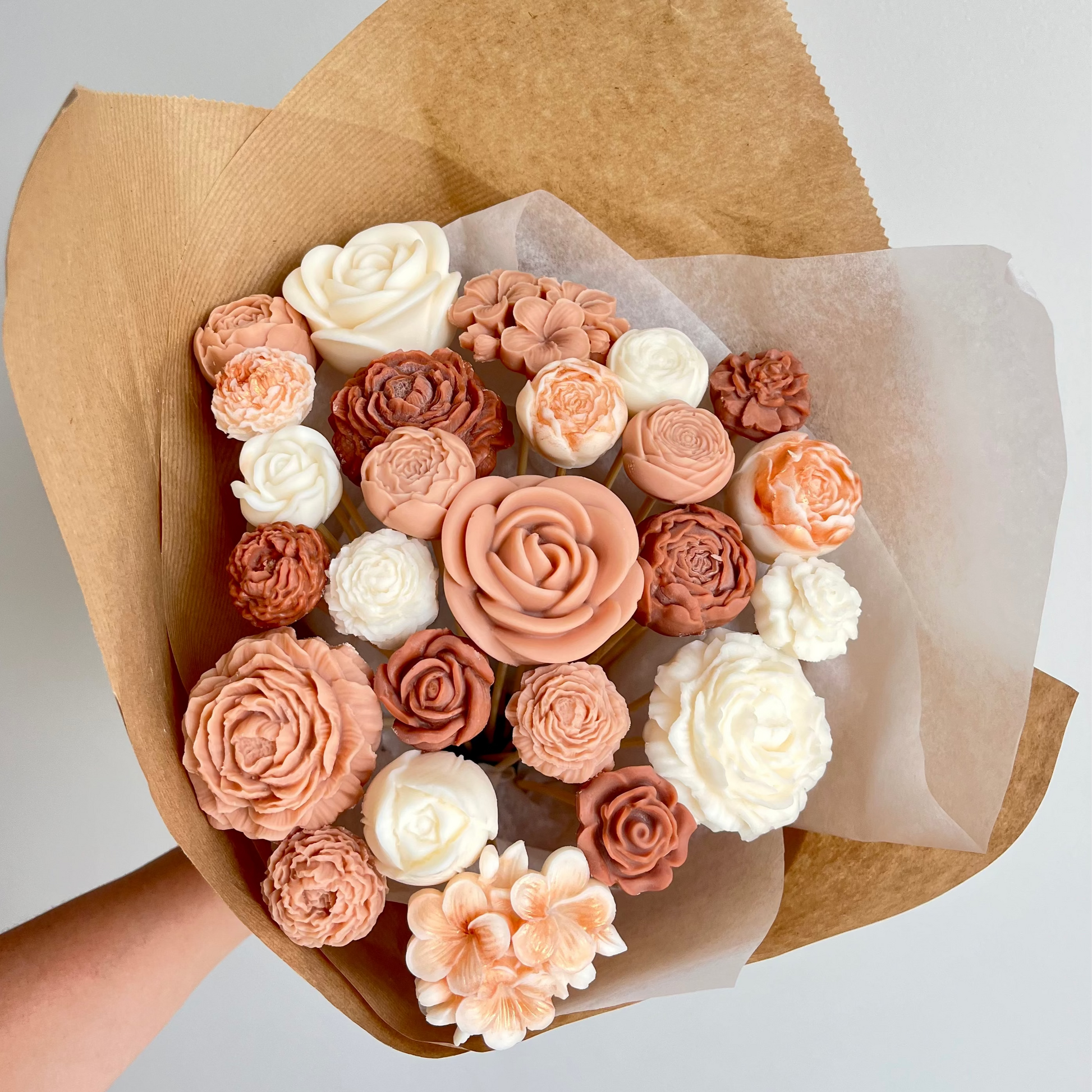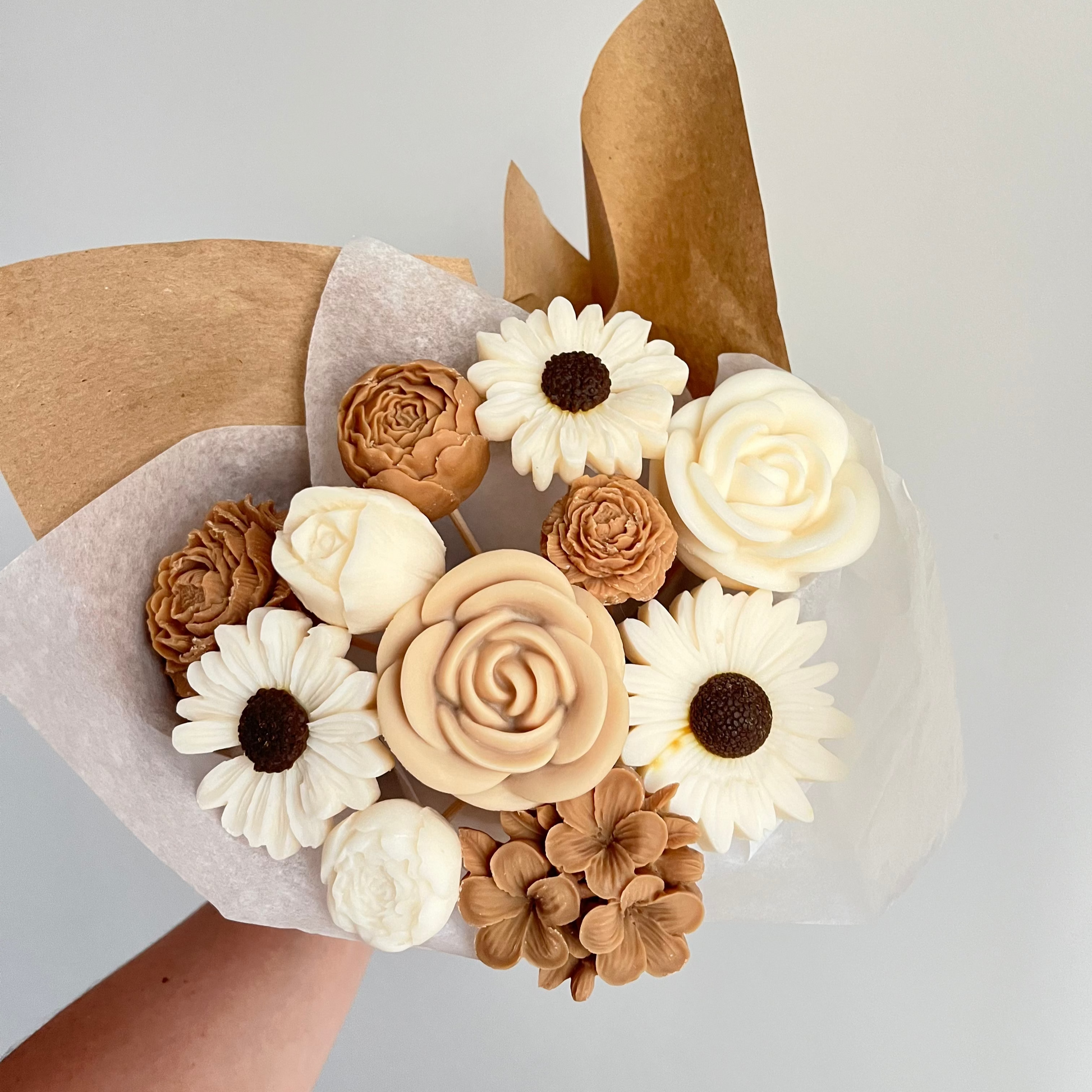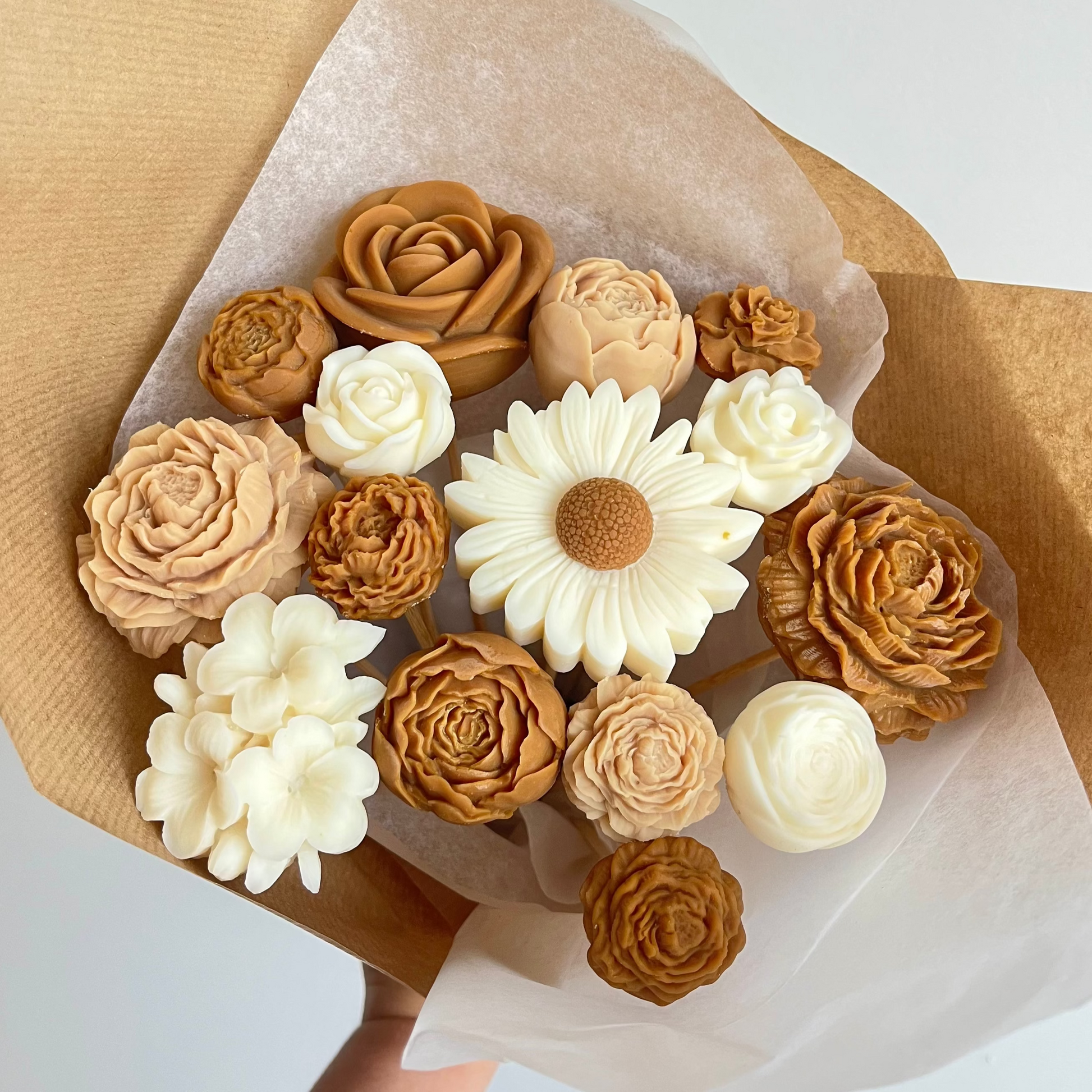 Chaque bouquet est composé de fondants parfumés en forme de fleurs.